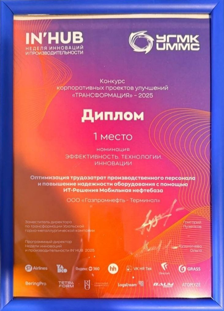 «Мобильная нефтебаза» создана как прикладной инструмент, который делает работу сотрудников топливных терминалов проще, технологичнее и безопаснее. Приложение помогает быстрее выявлять отклонения в работе оборудования, оперативно реагировать на них и снижать риски простоев. С его помощью уже оптимизированы маршруты обходов и сокращены трудозатраты, процесс контроля стал более прозрачным и управляемым.